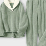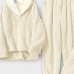 Maja | Flanel sæt forener tidløs elegance med sans for håndværk. Sættet består af en matchende bluse og bukser i samme nuance, fremstillet af blød, varm flanel. Hvert sting vidner om omhyggeligt håndværk og en arv af kvalitetsmaterialer, der står tidens test. Den klassiske knapdesign møder et afslappet snit, så looket forbliver sofistikeret og behageligt. Med begrænset antal til rådighed tilføjes en eksklusivitet og en varig værdi, som appellerer til samlere og dem, der værdsætter bæredygtig stil.
