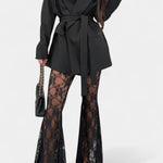 - Silhuet og design: Lang blazer med bælte, højtaljede bukser med blomster- og sejmandsinspirerede snit samt klokket fald i nederdelen.