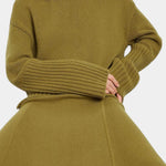 Patricia | Sæt er en sofistikeret fortolkning af moderne minimalisme, hvor håndværk møder tidløs elegance. Toppen byder på en høj krave og lange ærmer med sideåbninger i luksuriøs, struktureret strik, mens den løse ribstrikkede overdel tilføjer dybde og en nutidig kant. Maxi-nederdelen med formskåret talje og let fald skaber en balanceret silhuet, der fungerer lige godt til kontor og aften. Sættet udstråler eksklusivitet gennem kvalitetsmaterialer og omtanke i detaljer og tilbyder en langtidsholdbar, collector-venlig appel i sæsonens begrænsede udvalg.
