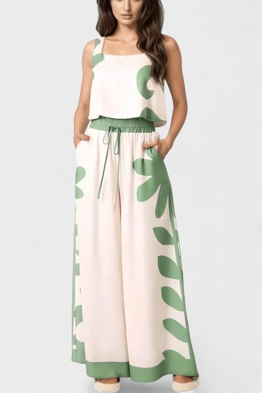 Serafina | Sæt fra Katrine forener sofistikeret lethed med tidløs elegance. Dette to-delte sæt består af en ærmeløs top og brede ben, der følger din bevægelse uden at gå på kompromis med stil. Det folkloristiske blomsterprint tilføjer en vintage romantik, som fanger lyset på solrige dage og de rolige øjeblikke i hverdagen. Let vævet stof og åndbar konstruktion holder dig kølig fra morgen til aften, mens materialer af høj kvalitet og præcist håndværk giver langvarig komfort og en raffineret finish. Produktionen er begrænset, hvilket gør Serafina | Sæt til et tidløst samleobjekt med ekstraordinær eksklusivitet og universel appel.