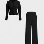 Designet til den moderne kvinde, der værdsætter både stil og komfort, passer dette sæt perfekt til både afslappede dage og elegante anledninger.