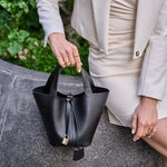 Denne taske er selve definitionen på sofistikeret minimalisme, hvor et skulpturelt design møder den funktionalitet, som en dynamisk hverdag kræver. Med inspiration fra klassisk europæisk æstetik præsenterer den en struktureret "bucket"-silhuet, der balancerer perfekt mellem elegance og praktisk anvendelighed.