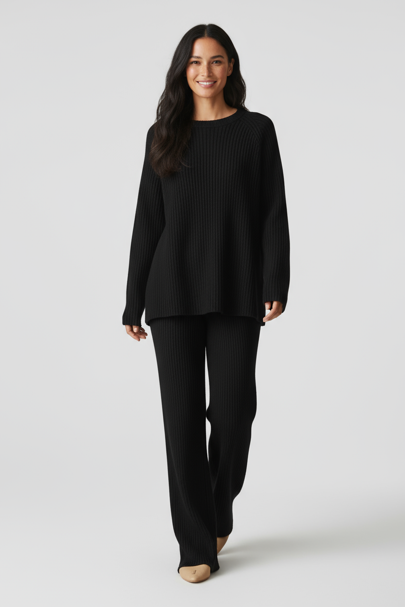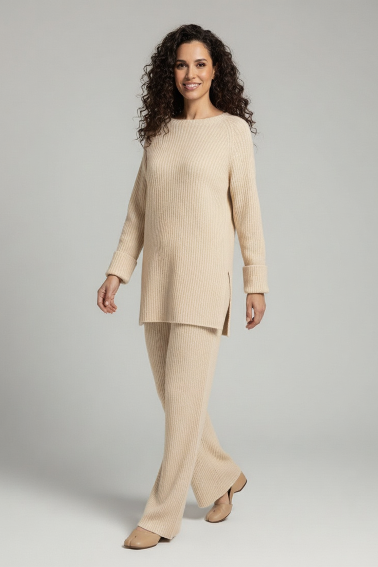 Et hyggeligt og alsidigt uldsæt designet til komfort hele dagen og ubesværet stil. Med sin afslappede pasform og bløde tekstur er det perfekt til afslapning, hverdagsbrug eller til at holde sig varm på kølige dage.