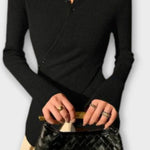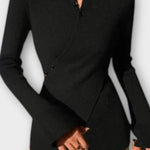 Gry | Sort strikketrøje repræsenterer en sofistikeret fusion af tidløs elegance og moderne komfort. Håndværket kommer til udtryk i den tætvævede konstruktion og i den bløde, elastiske bomuldsblanding af høj kvalitet, der sikrer både holdbarhed og åndbarhed. Trøjen følger kroppen med en smal, flatterende silhuet, mens den høje krave og den asymmetriske knaplukning tilfører et distinkt, moderne præg. Gry binder fortid og nutid sammen gennem gennemført detaljering og robust konstruktion, der lover lang levetid. Derved opnås tidløs værdi, som kan gå i arv gennem generationer. Begrænset antal enheder understreger eksklusiviteten og giver ejeren en tydelig samlerværdi i et raffineret fællesskab.