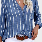 Luna | Stribet bluse forener tidløs elegance og håndværk af højeste kvalitet. Hver detalje vidner om omhyggelig konstruktion og materialer, der understøtter en premium standard. Det klassiske stribede motiv giver et alsidigt, evigt moderne udtryk, der passerer til alle årstider og lejligheder. Produceret i begrænset antal fremhæver Luna eksklusiviteten og gør den til en ægte samlergenstand for dem, der søger varig stil uden at gå på kompromis med komforten. Den lette konstruktion og den gennemførte pasform lover daglig komfort, mens de justerbare ærmer giver fleksibilitet til skiftende vejr og stemning.