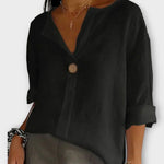 - Designdetaljer : V-hals med diskret knapdetalje, der tilføjes elegance uden at dominere.