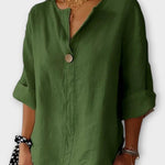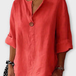 Marie | V-hals skjorte står som et symbol på tidløs nordisk elegance. Skabt i let linnedstof forenes en afslappet pasform med en V-hals og en diskret knap ved halsudskæringen. Den naturlige struktur og kølige lethed afspejler håndværksmæssig kvalitet og herkomst, som mærket står bag. Produceret i små partier, bærer den en begrænset tilgængelighed og en tidsløs appel, der gør den til et varigt element i garderoben. Den kan bæres solo for et rent sommerlook eller som en elegant base i et mere formelt sæt, hvilket giver langsigtet værdi for den bevidste forbruger.