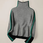 Džemper Martina kombinira modernu eleganciju s praktičnom udobnošću - savršen odjevni predmet za hladne dane. Kontrastne pruge daju mu upečatljiv, suvremeni dizajn, dok visoki ovratnik ne samo da izgleda elegantno, već vas i grije. Izrađen od mekane, koži prijazne tkanine, ovaj džemper idealan je za opušteno slobodno vrijeme ili ležerno-šik svakodnevni izgled.