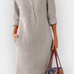 - Silhuet og pasform: Klassisk snit, der flatterer alle kropsformer og fremhæver taljen uden at begrænse bevægelsen.